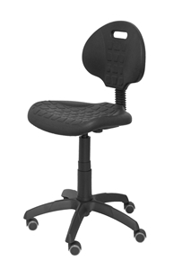 Silla de oficina para trabajo especial para talleres u oficios donde hay que pasar la mayor parte del tiempo trabajando de pie o sentado. Silla ergonómica, giratorio y regulable en altura. Respaldo ergonómico de poliuretano inyectado de alta resistencia que lo hace adecuado para un uso intensivo. Asiento ergonómico de poliuretano inyectado de alta resistencia que lo hace adecuado para un uso intensivo. Asiento y respaldo de poliuretano inyectado de alta resistencia color negro. Regulable en altura mediante cilindro de gas. Base de poliamida alta resistencia. Ruedas de nailon de 5 cm de diámetro con eje central de acero. 24 meses de garantía. Instrucciones de montaje incluidas. Fácil montaje.
