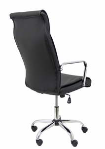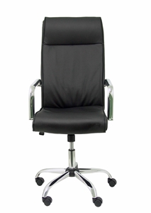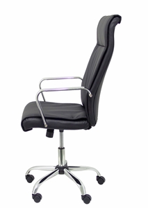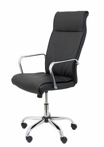 Sillón de dirección de diseño y buena calidad. Apto para cualquier ambiente de trabajo y para el hogar. Respaldo ergonómico y acolchado para una mayor adaptación a la espalda. Asiento ergonómico y acolchado para una mayor comodidad del usuario. Asiento y respaldo tapizados en similpiel color negro. Brazos fijos cromados. Mecanismo basculante. Regulable en altura mediante cilindro de gas. Base cromada de alta resistencia de. Ruedas de nailon. Instrucciones de montaje incluida. Fácil montaje.